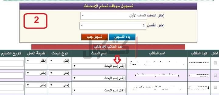 ويتم تسجيل موقف تسليم الابحاث بالتعاون بين شئون الطلاب واخصائى التطوير بالمدرسة،