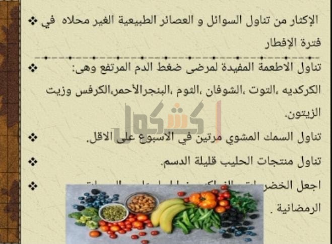 8- الابتعاد عن الأطعمه الغنية بالصوديوم مثل المكسرات المملحة والمخللات.