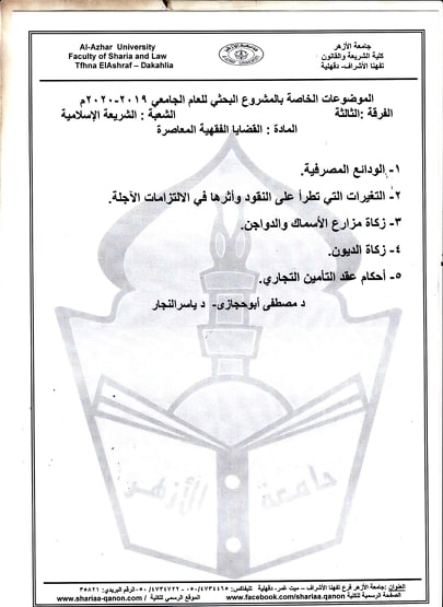وإليكم موضوعات المشروعات البحثية لطلاب الفرقة الثالثة شعبة الشريعة الإسلامية.