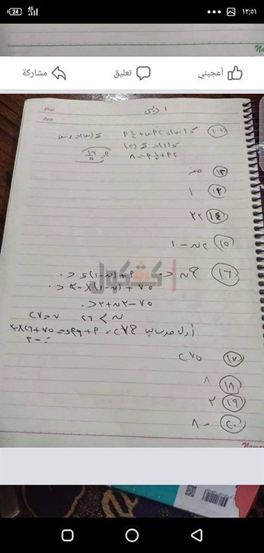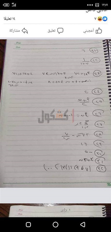 تداول عدد من طلاب الصف الثاني الثانوي" الفترة الزمنية الثانية"، إجابات أسئلة امتحان الجبر والتفاضل وحساب المثلثات" رياضيات"، عبر مجموعات موقع التواصل الاجتماعي" فيس بوك".