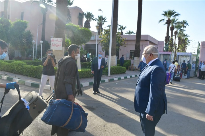 واطمئن الخشت، على حسن استقبال جميع العائدين، وتعقيمهم من خلال كبائن التعقيم الذاتي المتوافرة على أبواب ومداخل المدينة، وتسكينهم، وتوفير كافة سبل الراحة لهم، واتباع الإجراءات الاحترازية اللازمة للحفاظ على سلامتهم.