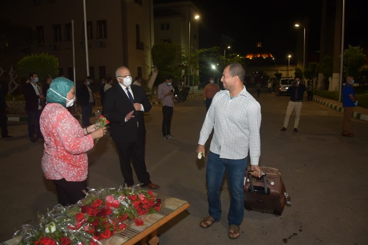 واطمأن الدكتور محمد الخشت، على حسن استقبال جميع العائدين، وتعقيمهم وتعقيم أمتعتهم من خلال كبائن التعقيم الذاتي المتوفرة على أبواب ومداخل المدينة، وتسكينهم، وتوفير كميات كبيرة من الوجبات الجاهزة والمشروبات، وتوفير كافة سبل الراحة لهم، واتباع الإجراءات الاحترازية اللازمة للحفاظ على سلامتهم.