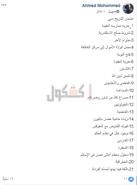 تداول إجابات التاريخ للثاني الثانوي على السوشيال ميديا