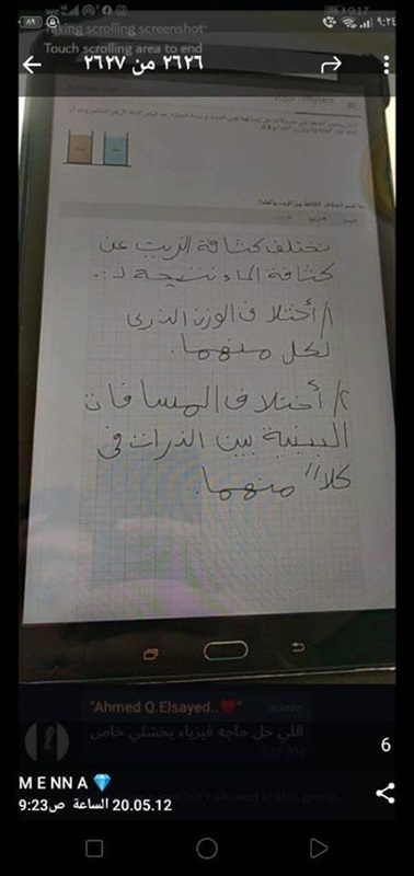 تداول عدد من الطلاب على مواقع التواصل الإجتماعي حل امتحان مادة الفيزياء لطلاب الصف الثاني الثانوي القسم العلمي، عبر أحد الجروبات التعليمية الخاصه بهم على "الواتساب" حيث قام عدد من الطلاب بنشر إجابات الامتحان.