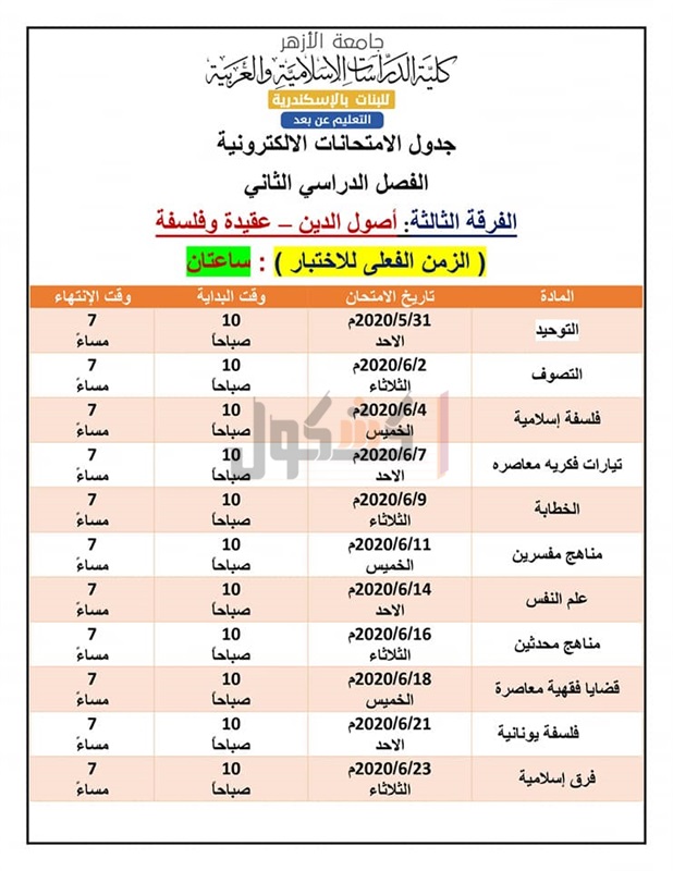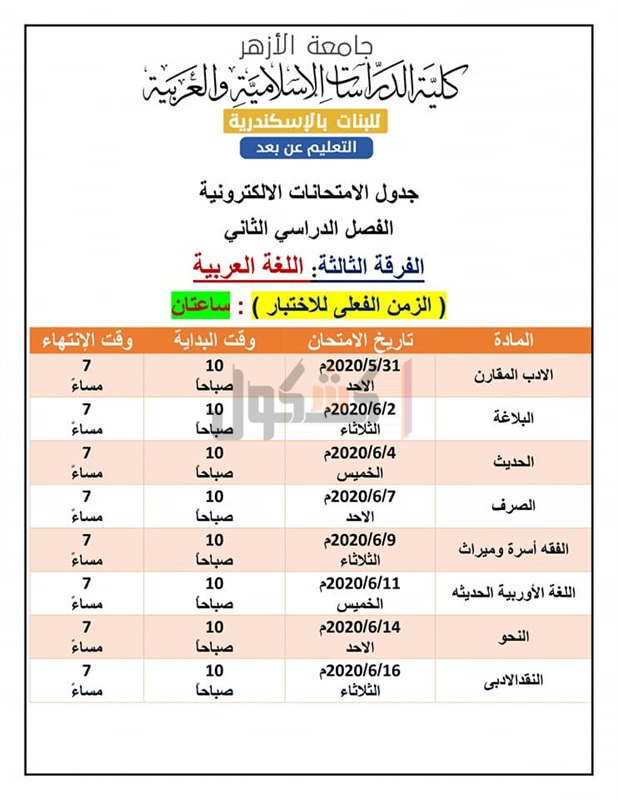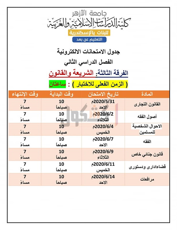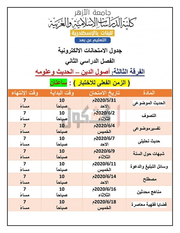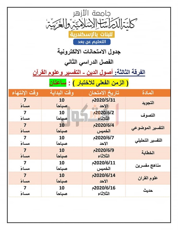 ننشر جدول الامتحانات الالكترونية لطالبات "دراسات" الإسكندرية الفرقة الثالثة