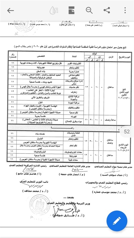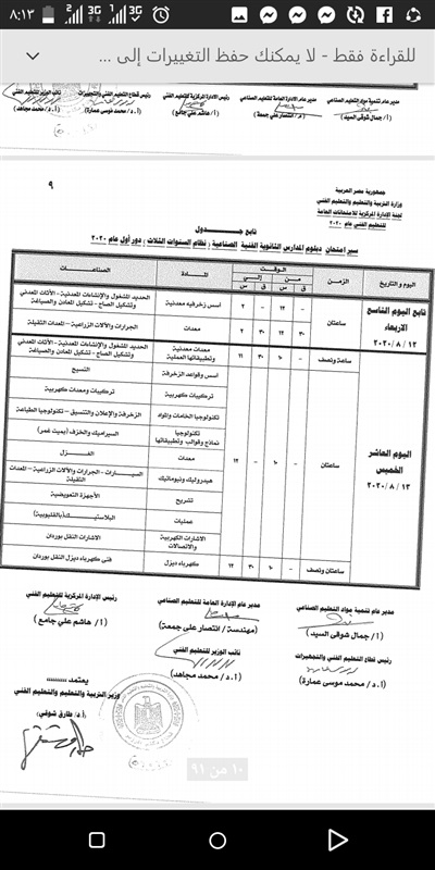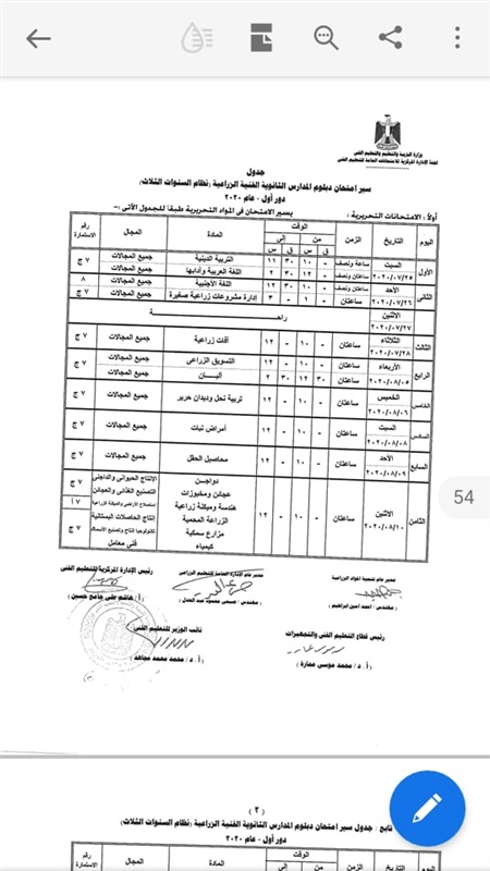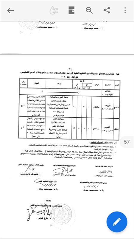وزير التعليم يعتمد جداول امتحانات الدبلومات الفنية للعام الدراسي 2020-2019