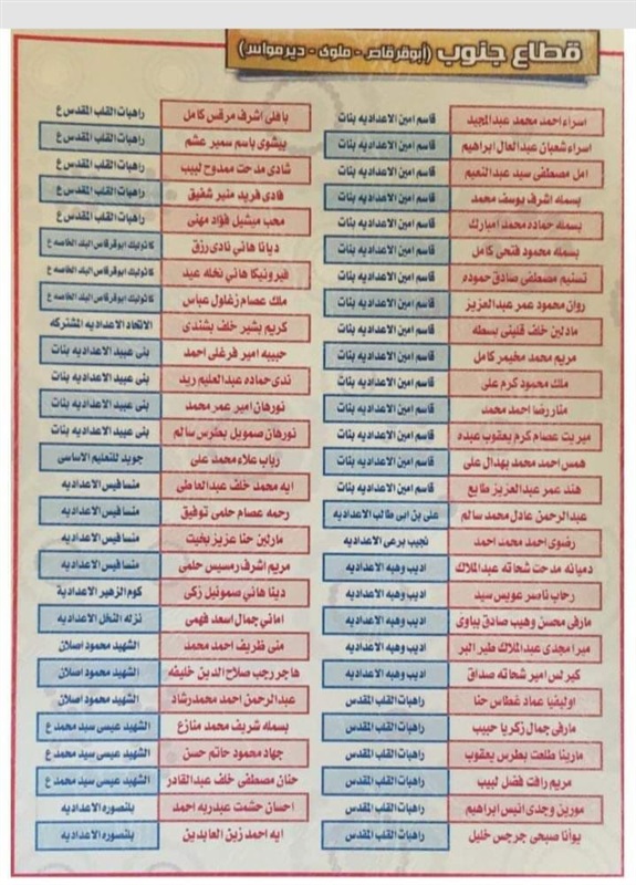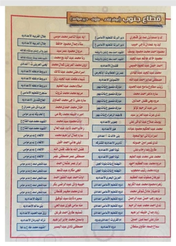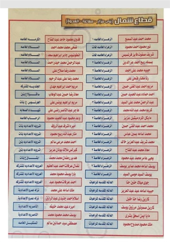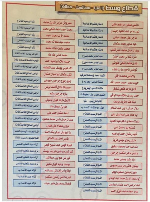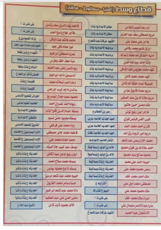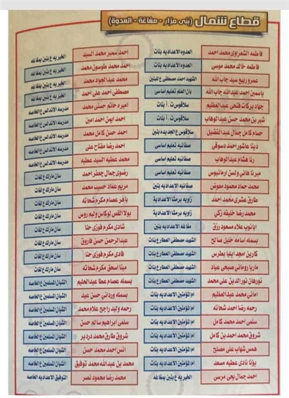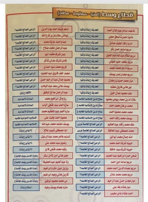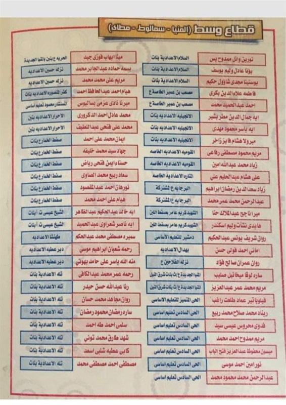 ننشر أسماء أوائل الشهادة الإعدادية بالمنيا