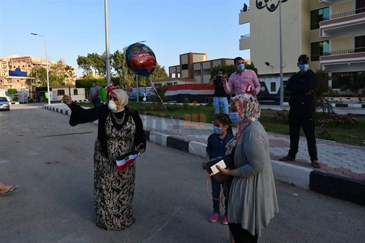 وأطلقت تكبيرات العيد المسجلة، ثم تم توزيع إعلام مصر والحلوى والهدايا التذكارية على أفراد الفوج وسط أجواء تعكس الفرحة وضمن إجراءات احترازية مشددة طبقًا لتعليمات وزارة الصحة لمواجهة تفشى فيروس كورونا، وأعرب أفراد الفوج عن سعادتهم بحسن الاستقبال وتلك الأجواء المبهجة.