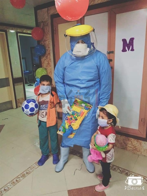 أطباء جامعة الزقازيق يوزعون لعب أطفال على أصغر مصابي كورونا "صور"
