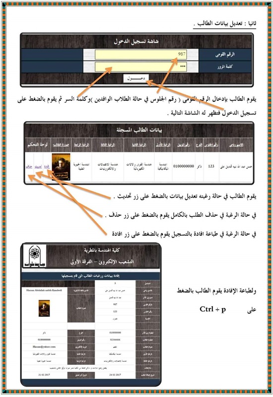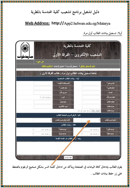 والدكتور محمد حسنين عميد الكلية وذلك من خلال تسجيل الدخول على الرابط التالى http://app2.helwan.edu.eg/Matarya