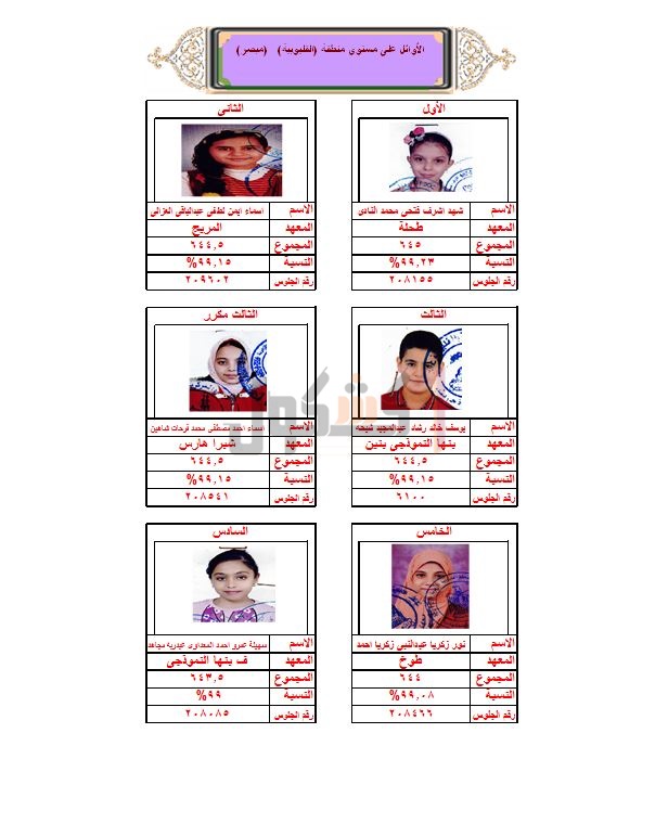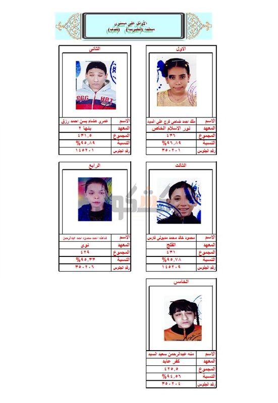 أوائل الشهادة الابتدائية الأزهرية 2020 بمنطقة القليوبية
