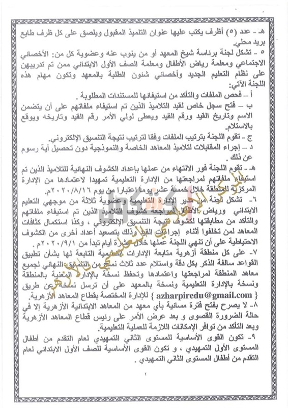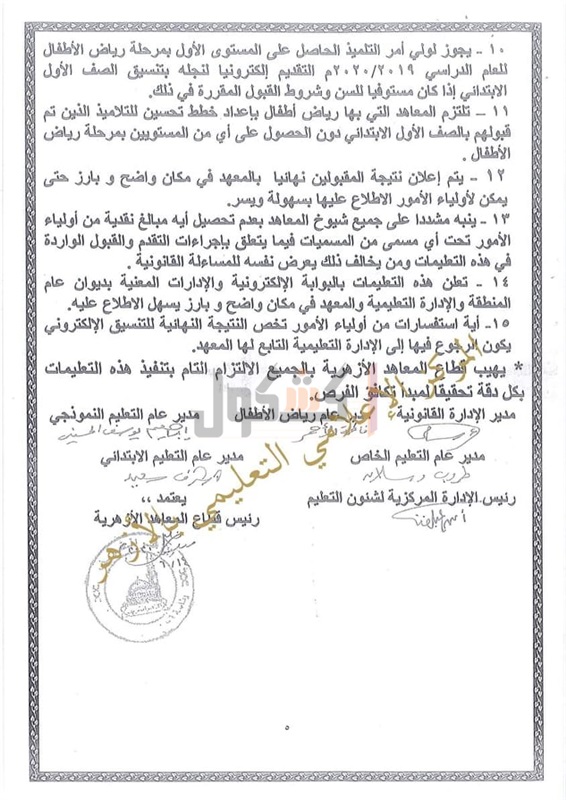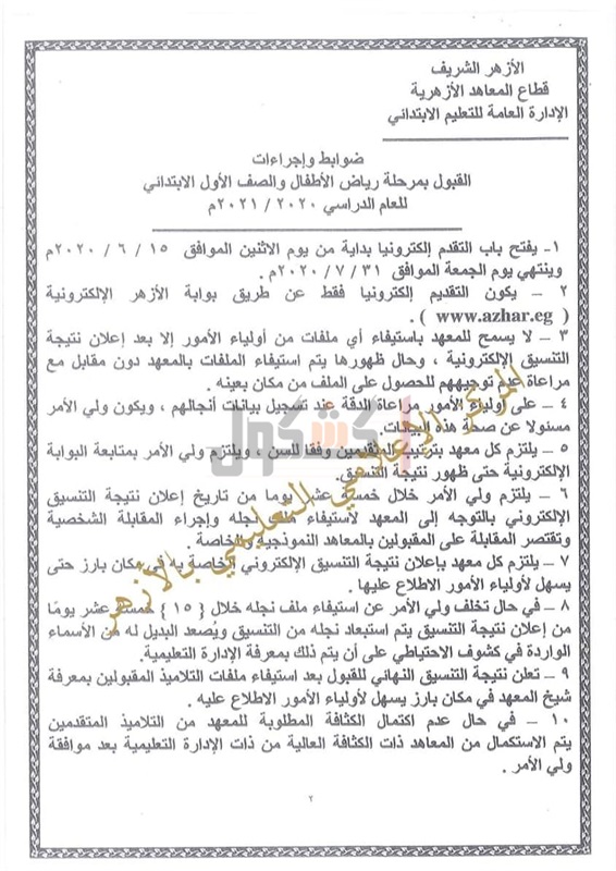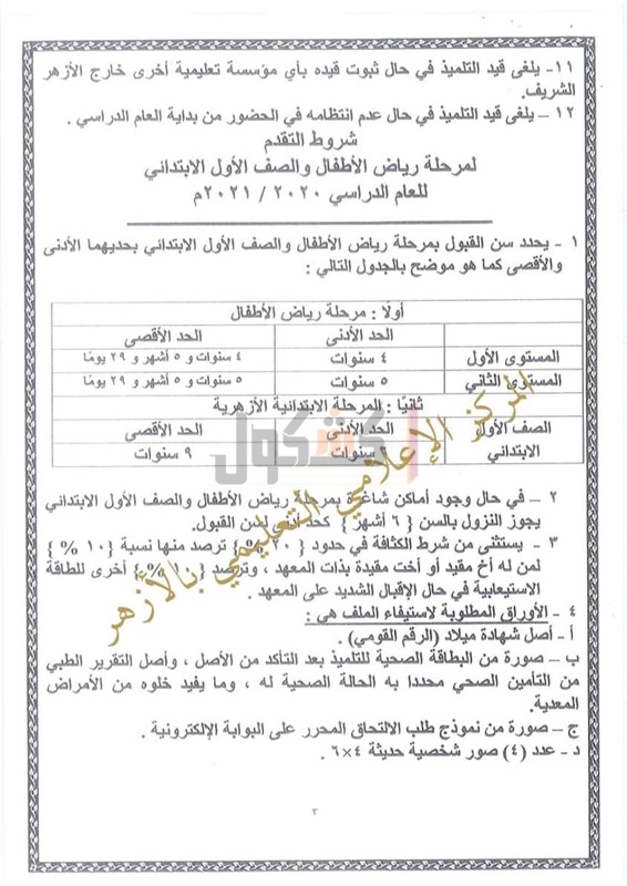 قواعد وضوابط القبول بمرحلة رياض الأطفال والأول الابتدائي بالأزهر