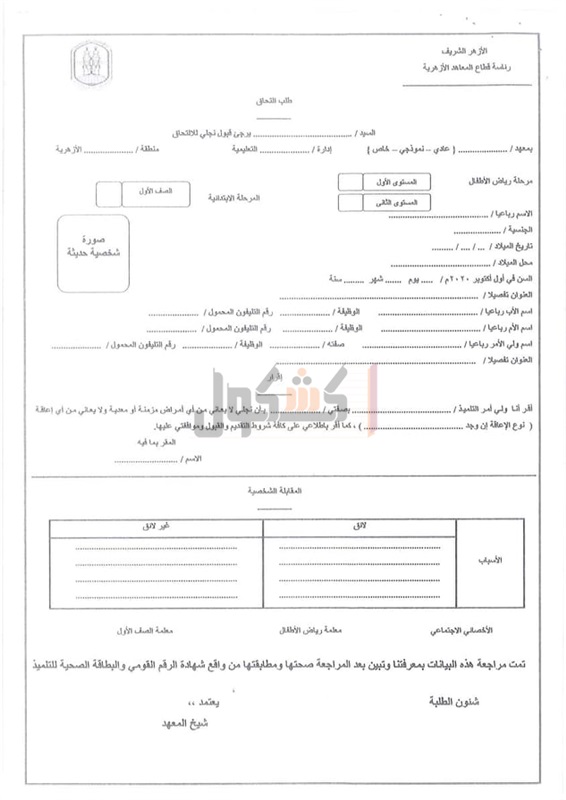 ويستقبل الأزهر الشريف، أوراق الراغبين