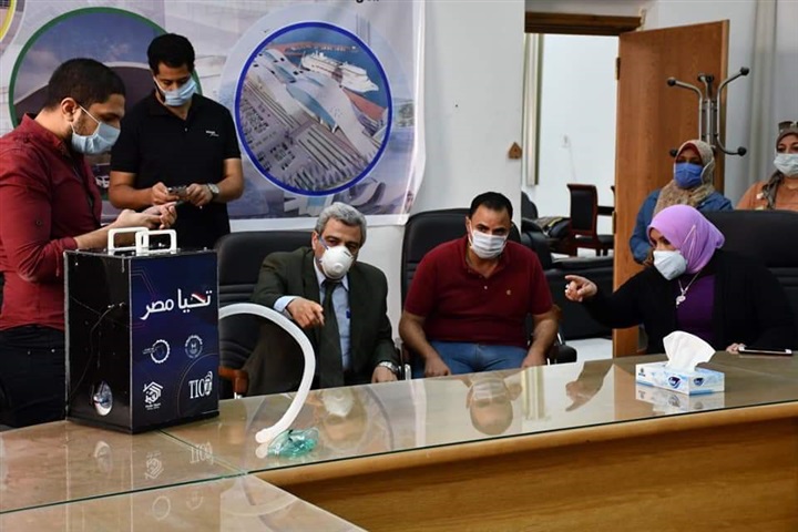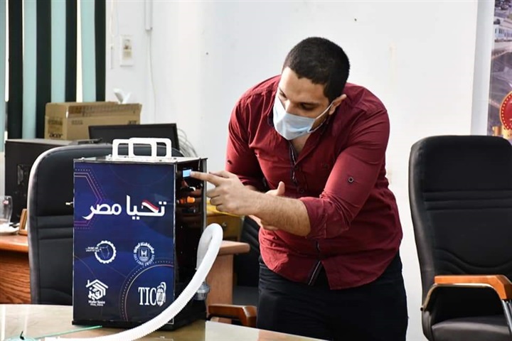 حيث تابعت رئيس الجامعة ما قام به كليه الهندسة من تصميم لجهاز تنفس صناعي تحت اشراف الدكتور تامر نبيل