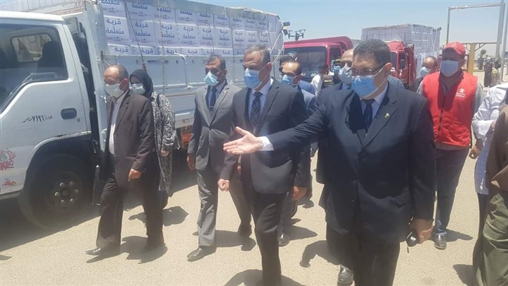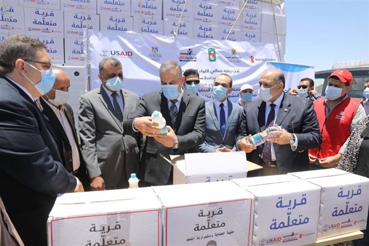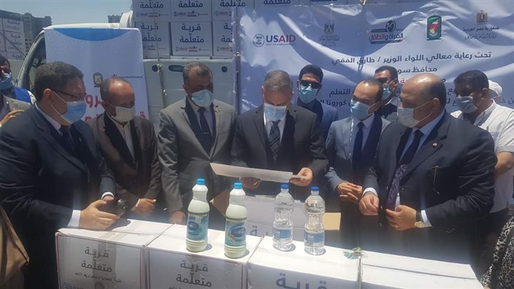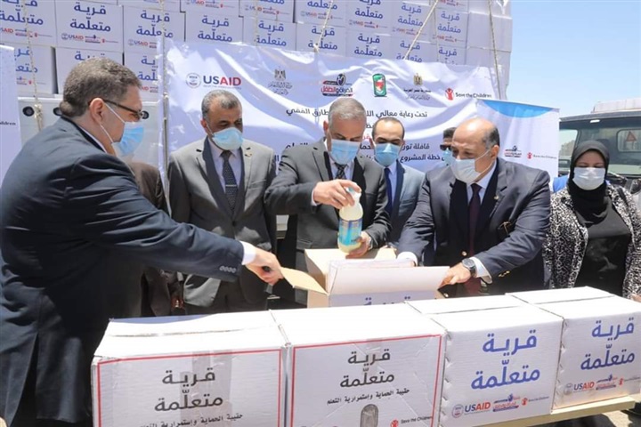وتفقد المحافظ شاحنات النقل المحملة بالحقائب، والتي تحتوي كل حقيبة منها على مواد مطهرة وكلور قابلة للتخفيف تكفي لـ 3 شهور، بالإضافة إلى خل للاستخدام المنزلي في غسل الخضروات، وصابون ومواد نظافة شخصية، ومطبوعات مصورة للتوعية بفيروس كورونا من إصدارات وزارة الصحة، و3 ألعاب تعليمية مهمة من مناهج التعليم المجتمعي لضمان استمرار مهارات القراءة والكتابة لدى التلاميذ، سيتم توزيعها على مدارس التعليم المجتمعي وعددها 414 مدرسة على مستوى المحافظة تخدم 388 قرية.