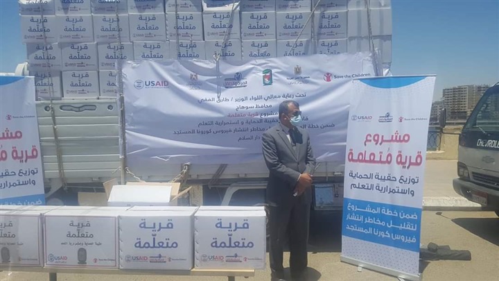 حيث انطلقت فعاليات المبادرة بتسيير قافلة حقائب الحماية والتي ضمت 11 حافلة محملة بـ 5 آلاف حقيبة مواد مطهرة ومطبوعات توعوية وألعاب تعليمية، كدفعة أولى لتوزيعها على 10 آلاف أسرة من أسر تلاميذ المدارس المجتمعية بالمحافظة ضمن مشروع " قرية متعلمة " بسوهاج، الذي تنفذه هيئة انقاذ الطفولة، ممثلة في جمعيتي: تحسين أوضاع المرأة والطفل بسوهاج، وجمعية الصعيد للتربية والتنمية، بالشراكة مع وزارة التربية والتعليم، ويهدف المشروع إلى اتاحة فرص تعليمية ذات جودة عالية للأطفال ممن هم في سن التعليم الابتدائي في المناطق الريفية لزيادة قدرتهم على القراءة والكتابة.