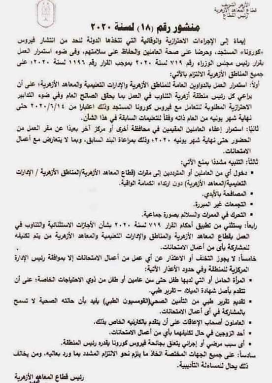 ونص المنشور على أنه يحق لأصحاب الأعذار التالية عدم المشاركة في امتحانات الثانوية الأزهرية وهم: