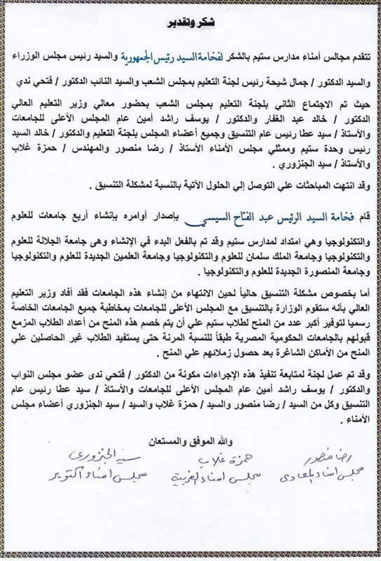 السيسي يحل أزمة مدارس المتفوقين بإنشاء 4 جامعات