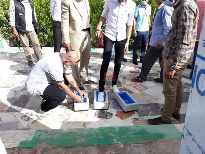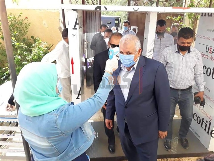 بالكاشف الحراري وتعقيمهم من خلال بوابات التعقيم التي تم توفيرها بمدخل كل لجنة، والوقوف