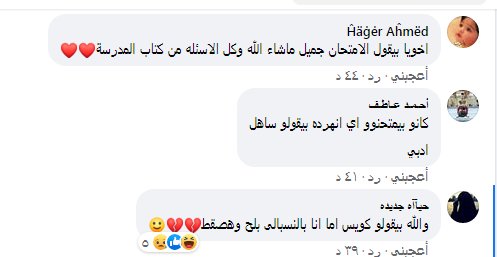 قال الطلاب أن الامتحان كان سهلًا للغاية وخاصة على الطلاب الذين اجتهدوا فى المذاكرة، ولم يبخلوا على المادة باى جهد فى المذاكرة.