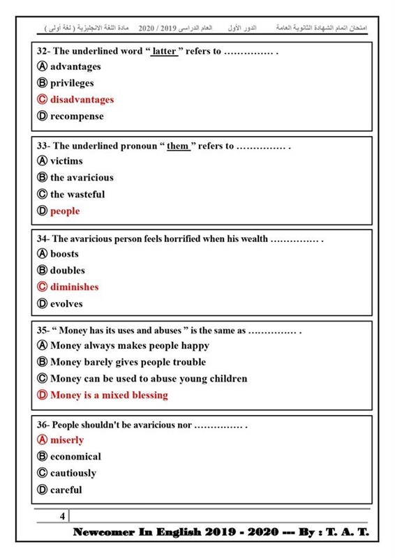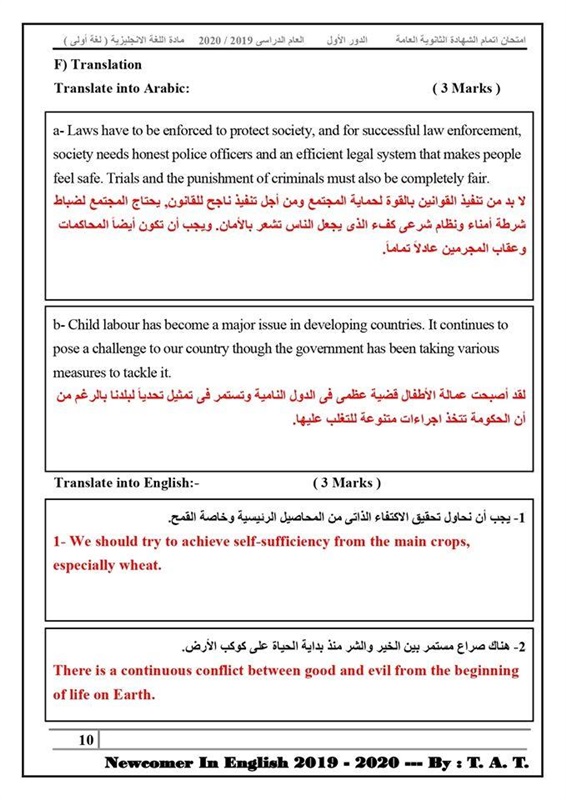 الإنجليزية، كتدريب لطلاب الصف الثالث الثانوي قبل خوض الامتحان.