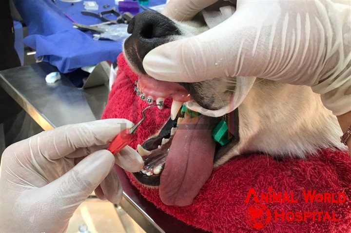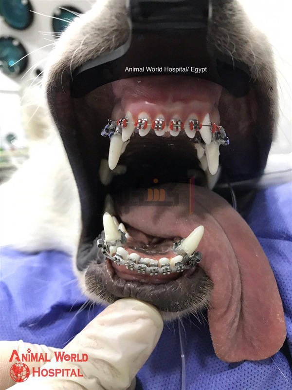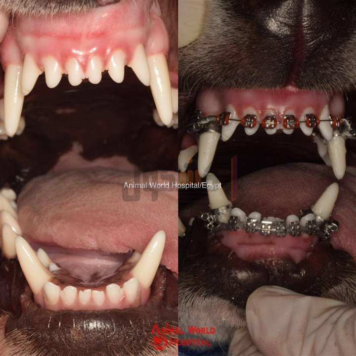 وأوضح فارس، أن الحل الأصعب هو تحريك الأسنان المسببة للمشكلة عن طريق تركيب تقويم أسنان للكلب والتي تعد من الحالات النادرة جدا حلو العالم، حسب كلامه، مشيرا إلى أنها مكلفة جداً حيث يصل سعر تركيب تقويم الأسنان لكلب في الخارج بما يقارب 1500-2000 دولار أمريكي.