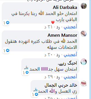 الامتحان كان سهلًا للغاية وخاصة على الطلاب الذين اجتهدوا فى المذاكرة ولم يبخلوا