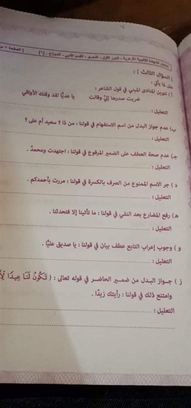 نشر طلاب الثانوية الأزهرية من القسمين الأدبى والعلوم الاسلامية امتحان النحو، الذى أداه الطلاب اليوم، وذلك بعد انتهاء اللجان بأكثر من ساعة، على مواقع التواصل الاجتماعى.