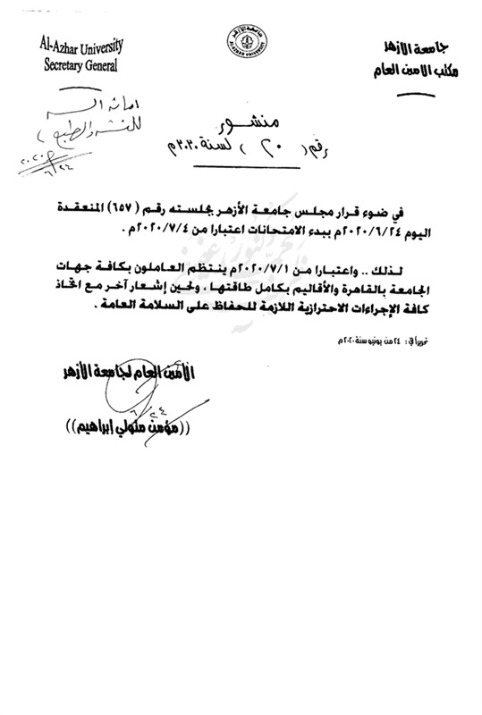 تداولت ادارة كليات جامعة الأزهر منشورًا