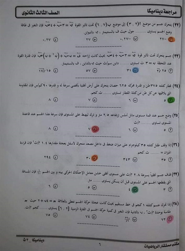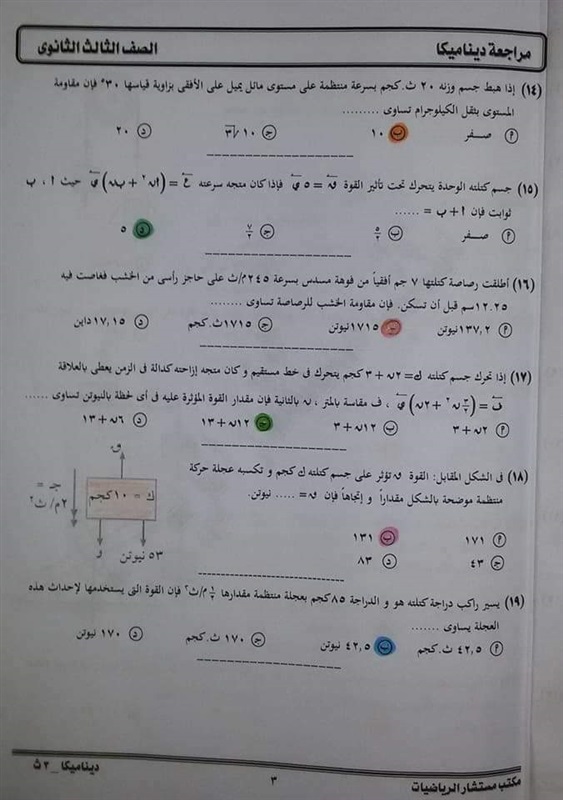 ويمكن لطلاب الثانوية العامة الاطلاع علي مراجعة فرع الديناميكا من خلال الصور المرفقة.