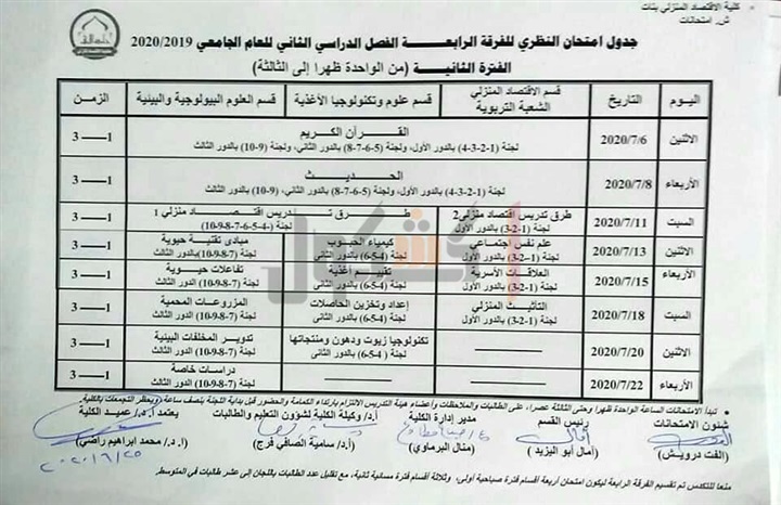 19/5/2020وعلى أن تتولى كل كلية بإعداد جداولها بما يتناسب مع أعداد مقرراتها