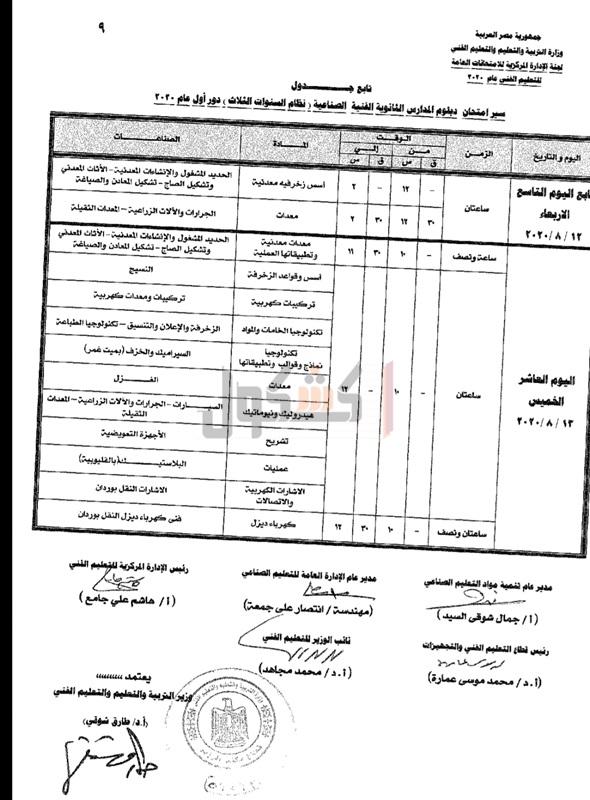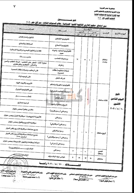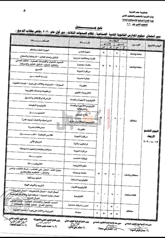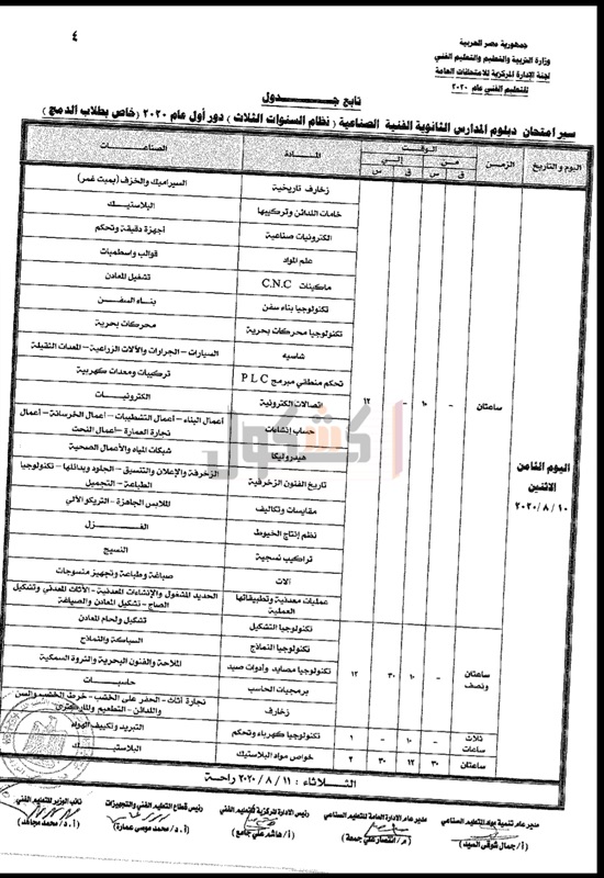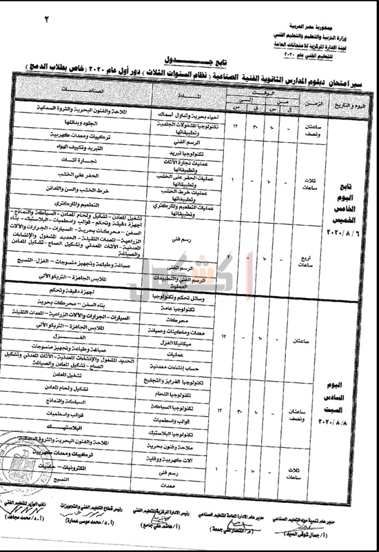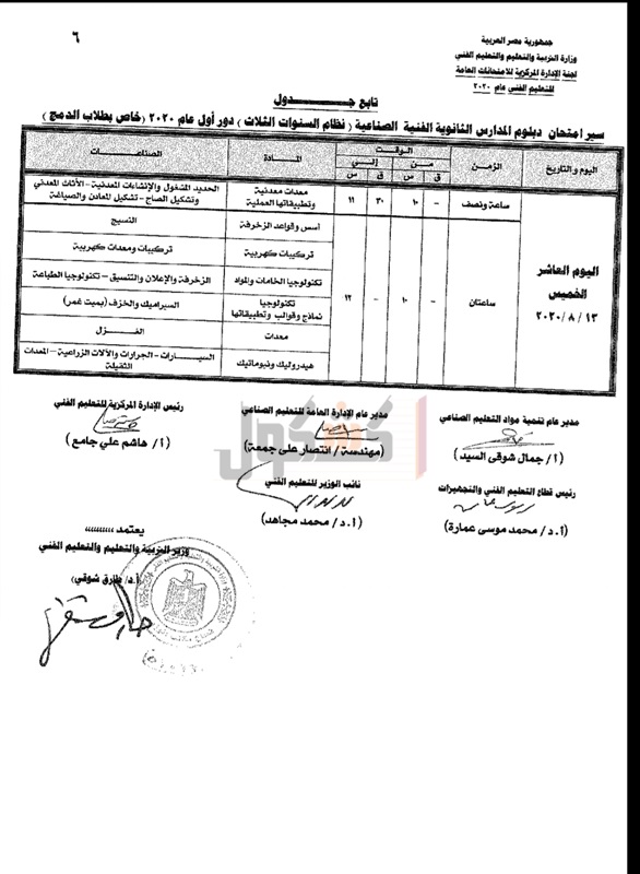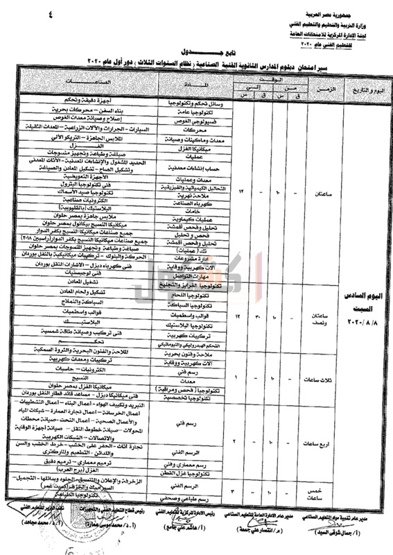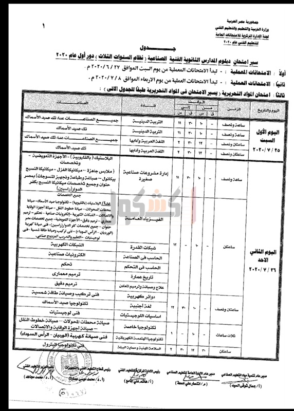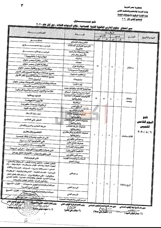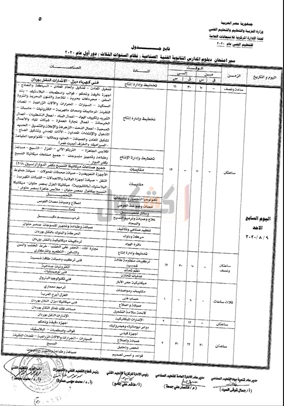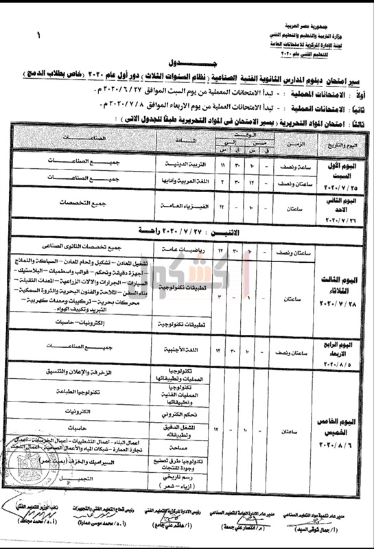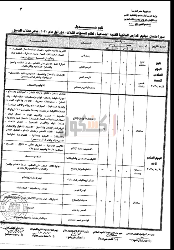 جدول امتحانات الدبلومات الفنية 2020.. التدريبات العملية والمعملية السبت 2762020