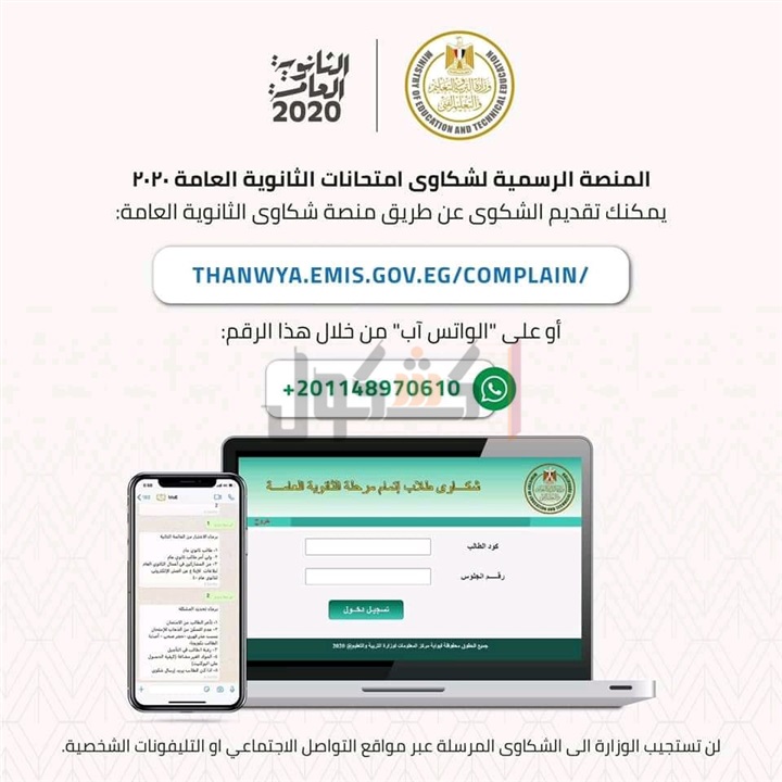 وللحصول على رابط تلقي شكاوي الثانوية العامة اضغط علي الرابط التالي: هنا.