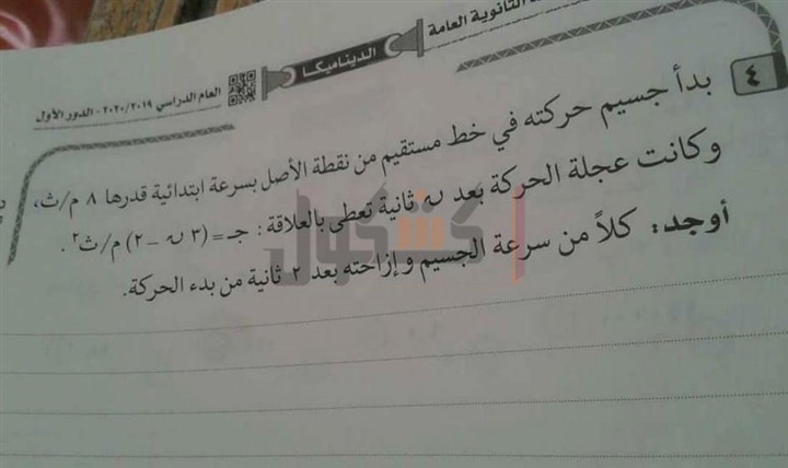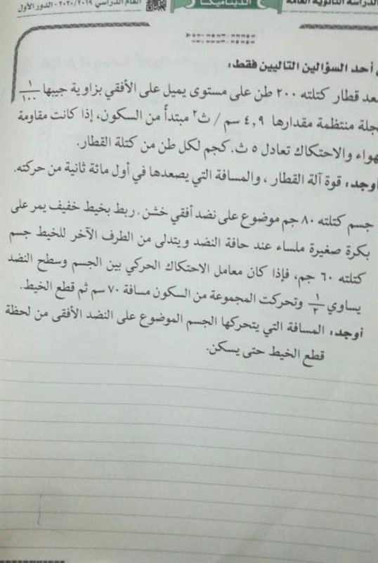 تداول إجابات امتحان الديناميكا للثانوية العامة 2020