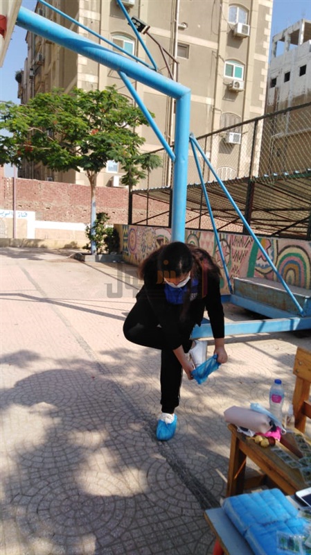 5- تواجد جميع الملاحظين وأفراد أمن اللجنة بفناء المدرسة لمتابعة عملية تباعد الطلاب.