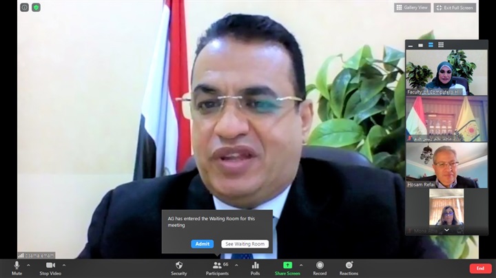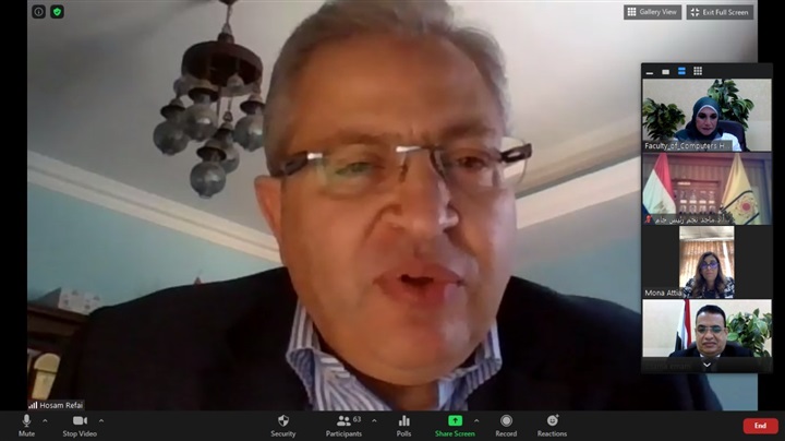 عقدت فعاليات المؤتمر الأول للذكاء الاصطناعي أون لاين عن طريق برنامج Zoom تحت إشراف نخبة من أساتذة كلية الحاسبات وهم الدكتور سيد عبد الجابر وكيل الكلية للدراسات العليا والبحوث، والدكتورة منال عبدالقادر وكيل الكلية لشئون التعليم والطلاب، والدكتورة أمل أبو طبل وكيل الكلية لشئون خدمة المجتمع والبيئة، والدكتورة منى محمد نصر رئيس قسم نظم المعلومات، والدكتورة هاله عبدالجليل رئيس قسم علوم الحاسب.