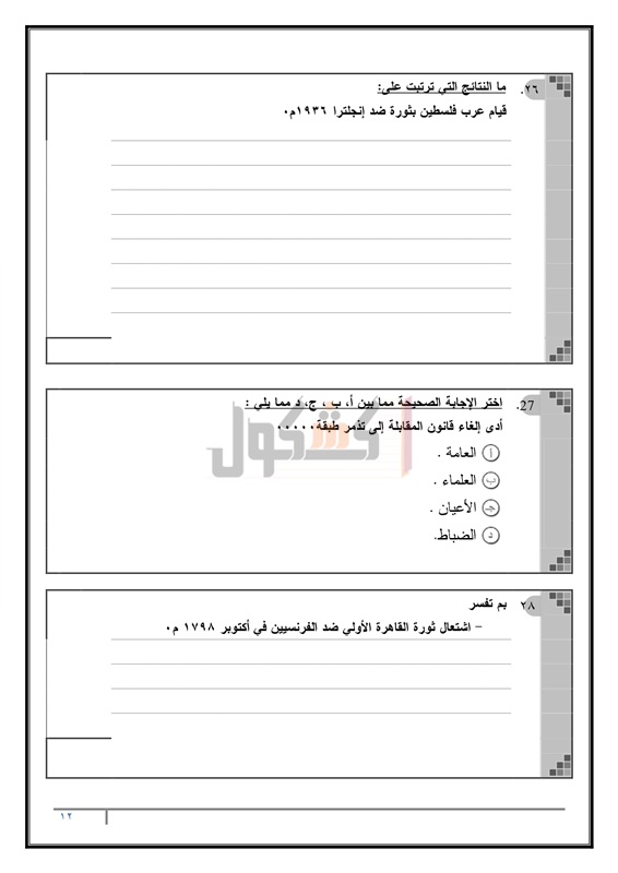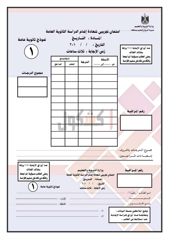 نماذج امتحانات الثانوية العامة في مادة التاريخ للسنوات السابقة
