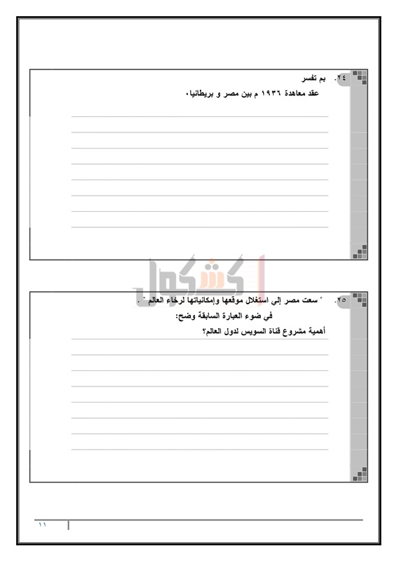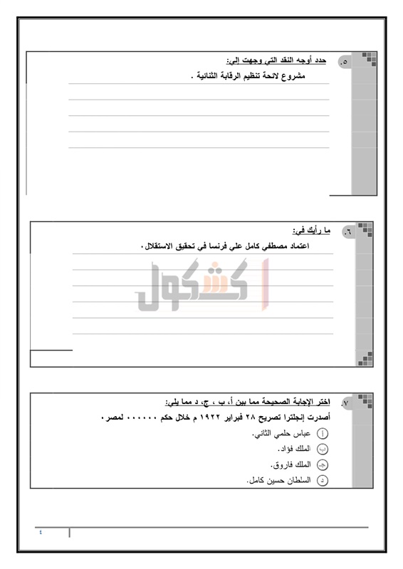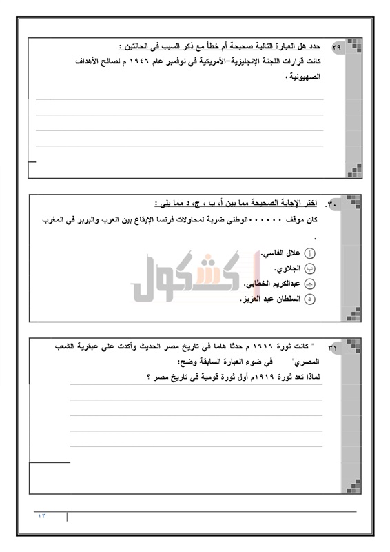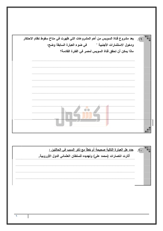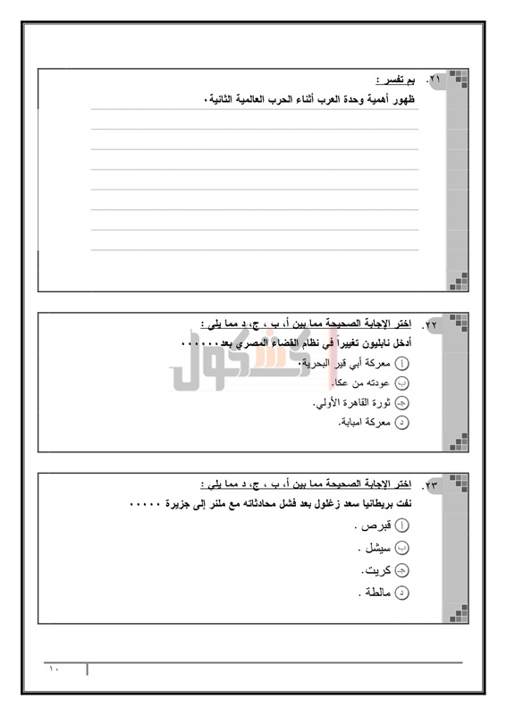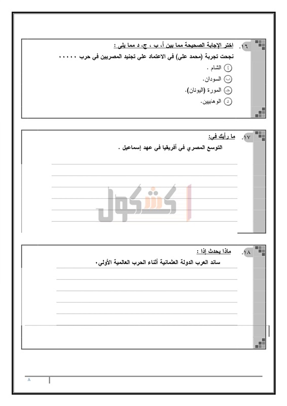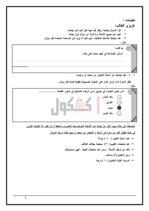 نماذج امتحانات الثانوية العامة في مادة التاريخ