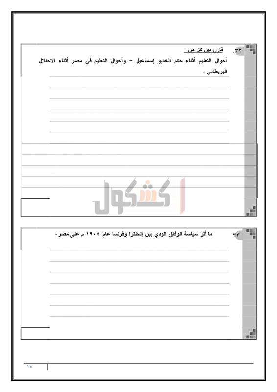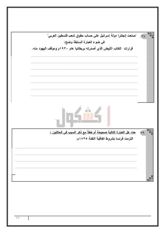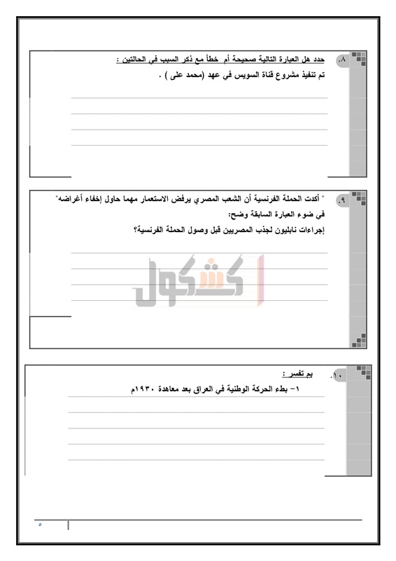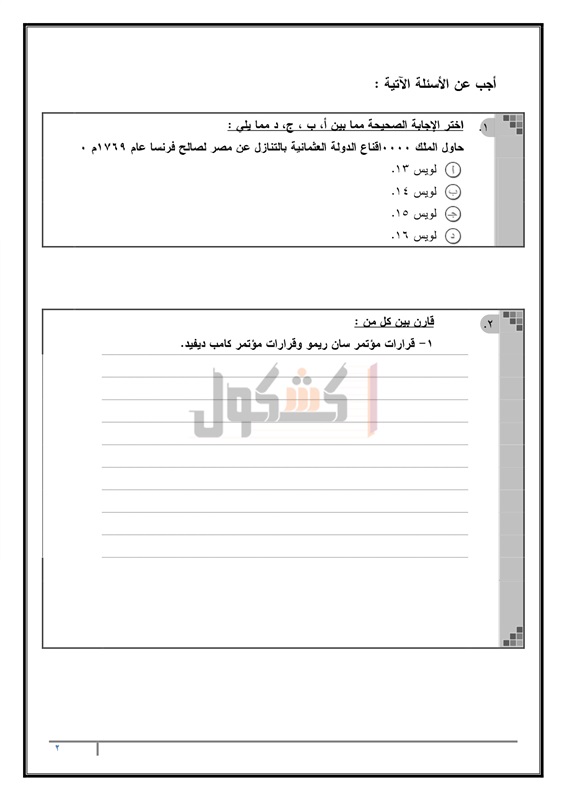 الأدبية التدرب على حل امتحان التاريخ، وكيفية التعامل مع الأسئلة من خلال حل نماذج
