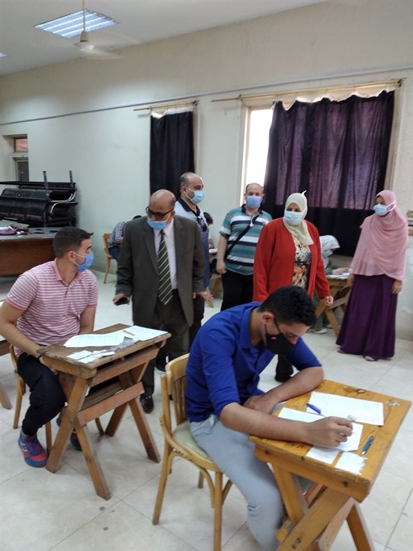 الطلاب أثناء تأدية الإمتحان ،ومتمنياً لهم النجاح والتوفيق.