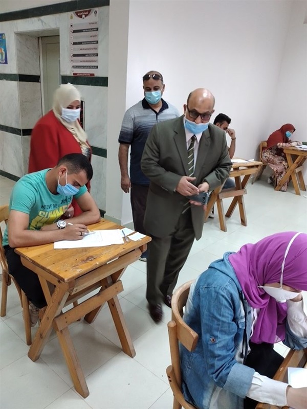 قبل دخول اللجان، والتزام الطلاب بتنفيذ الإجراءات الوقائية وإرتداء الكمامات ووجود