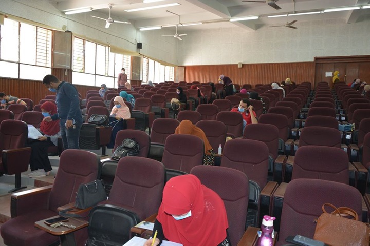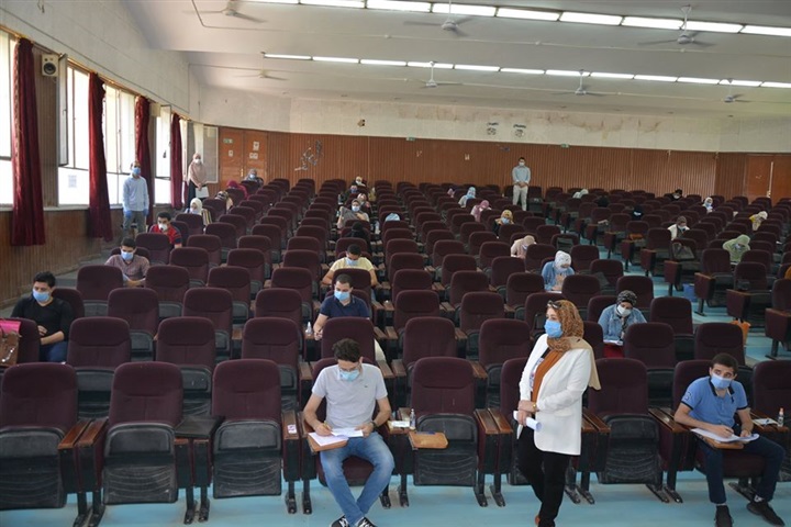 الحفاظ على التباعد بين الطلاب وإلتزامهم بإرتداء الكمامات أثناء تأدية الامتحان.