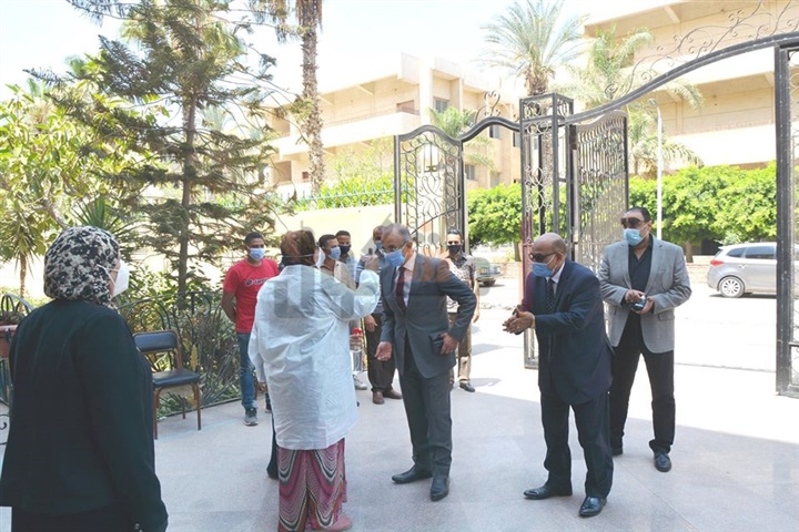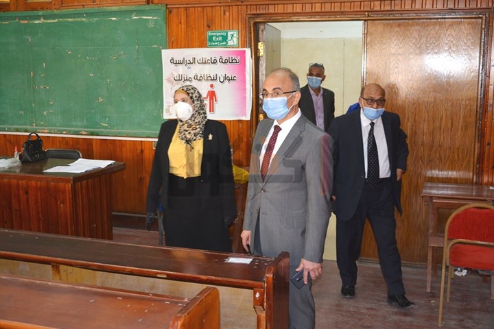 علي إجراء كشف قياس الحرارة قبل تفقد اللجان، حيث تجول داخل لجان الامتحان للإطمئنان