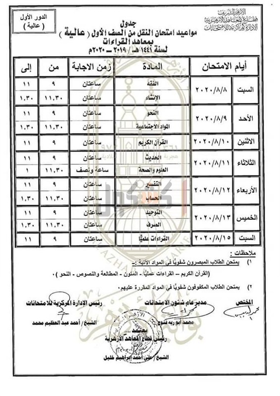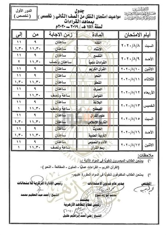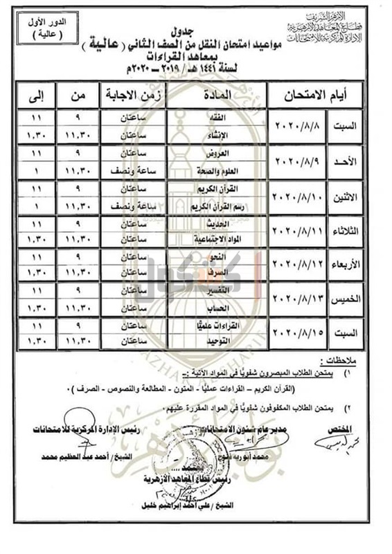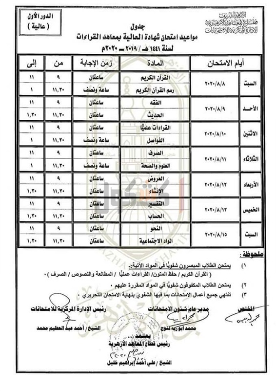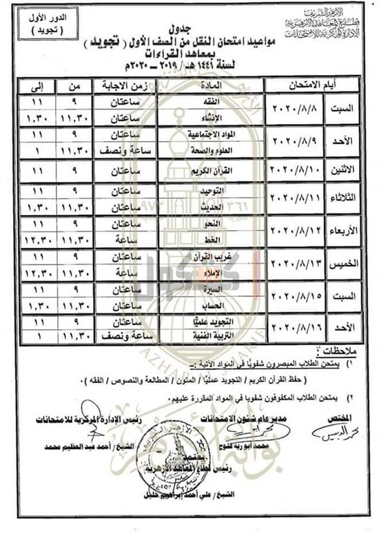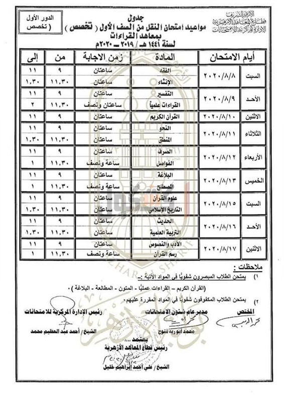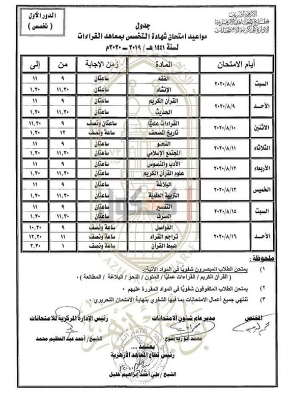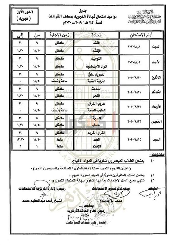 أعلن قطاع المعاهد الأزهرية، جداول امتحانات نهاية العام لشهادات القراءات، والتي ستعقد في الثامن من أغسطس الماضي.