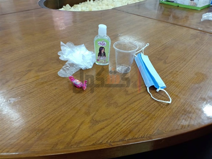 وأكياس هدايا عبارة عن مطهر وقفاز وكمامة وكوب وحلويات.