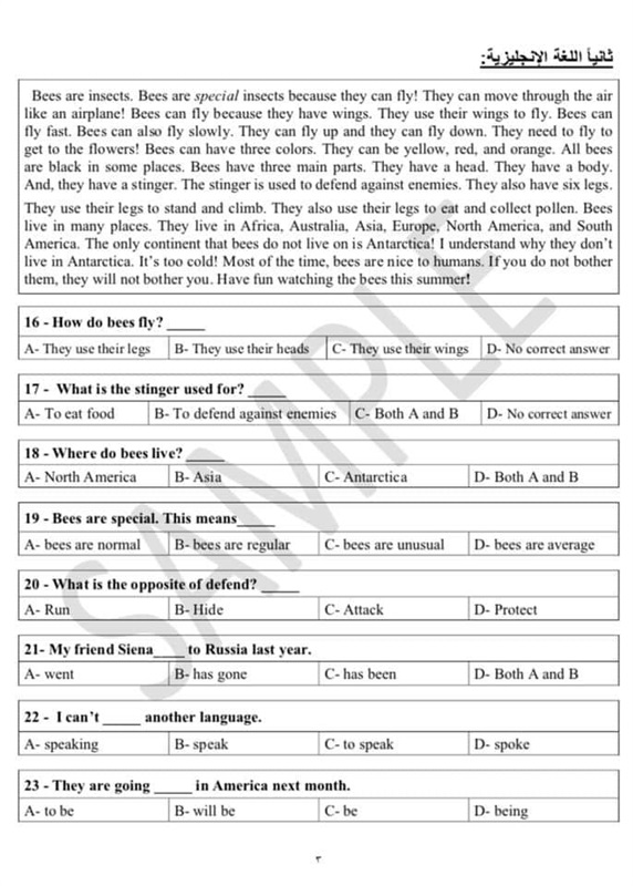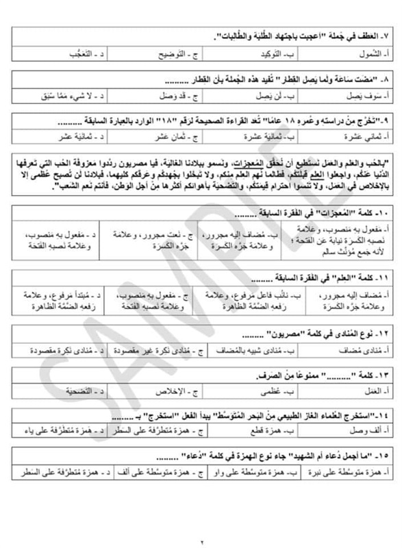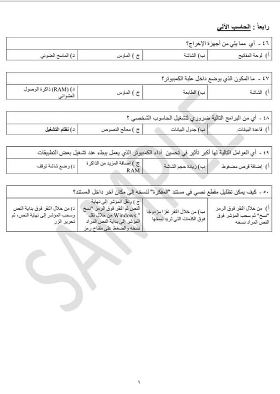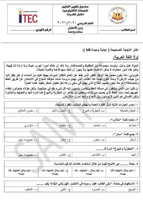 مرفق مع البيان نموذج لامتحانات القدرات للطلاب المتقدمين للالتحاق بالمجمعات التكنولوجية