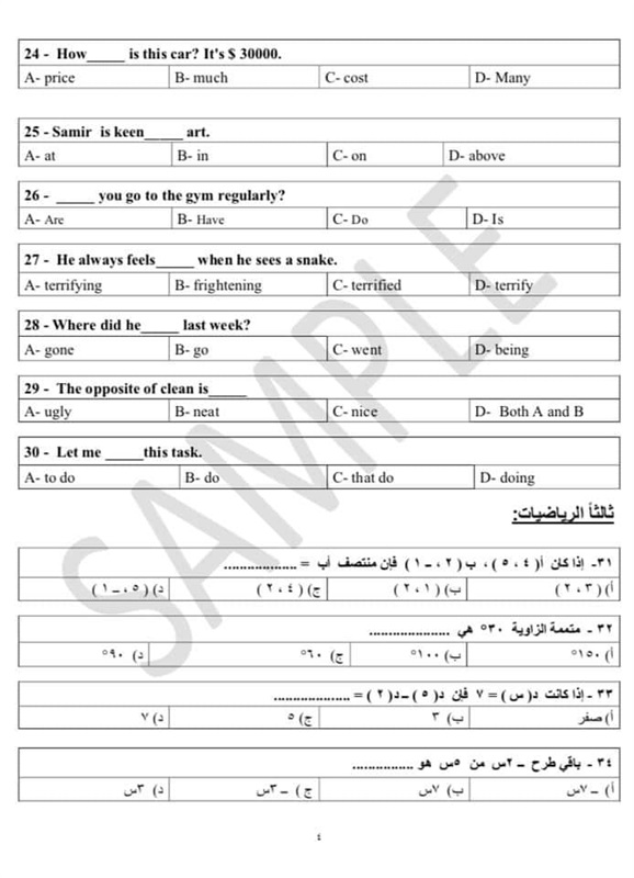 وأشار إلى أن الاختبار عبارة عن 50 سؤالا في صورة اختيار من متعدد، والأسئلة ستكون في اللغة العربية، والرياضيات، واللغة الإنجليزية، وبعض أسئلة الحاسب الالي، وعلى الطالب أن يحضر معه قلم رصاص وممحاة و اله حاسبة، لتظليل الإجابة التي يختارها ولن يسمح له باستخدام أية أدوات من الآخرين.