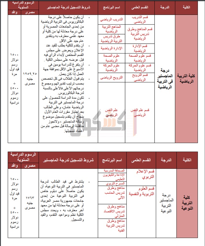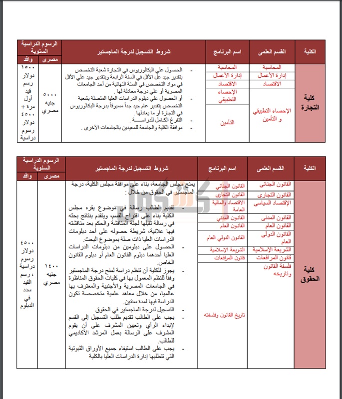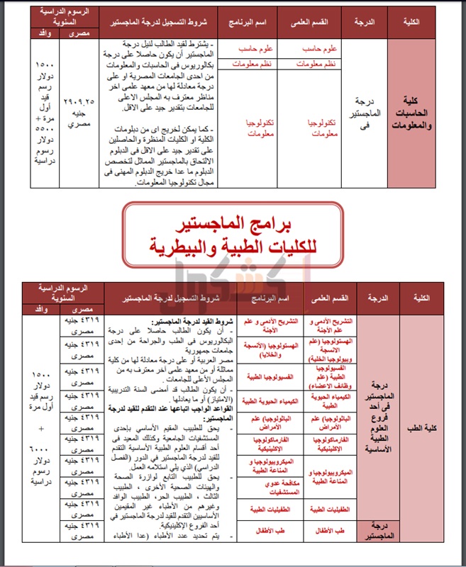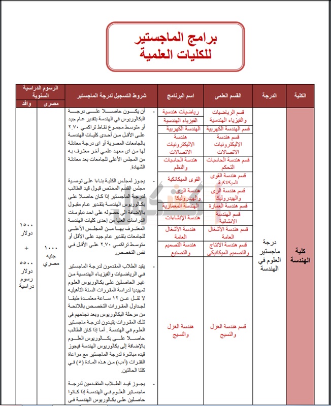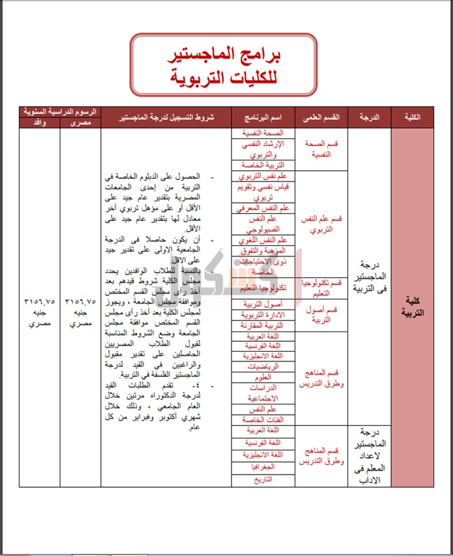 ننشر شروط ومصروفات "الماجستير" بجامعة المنصورة