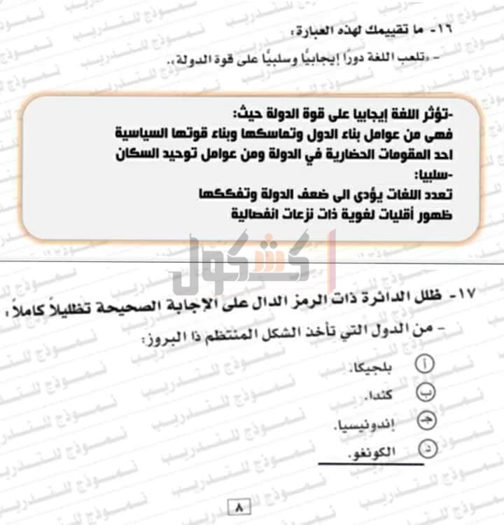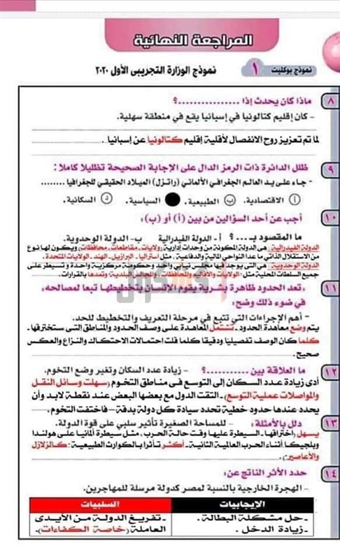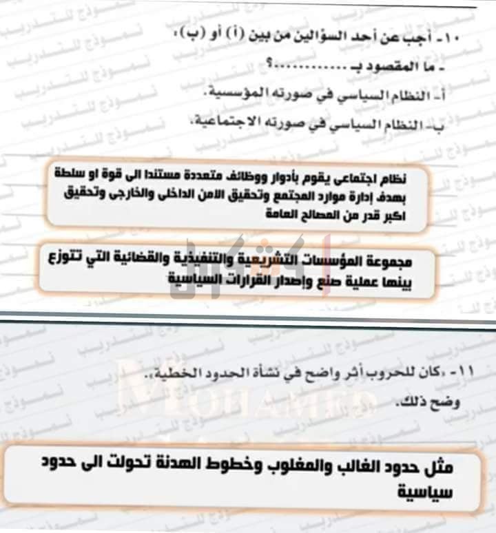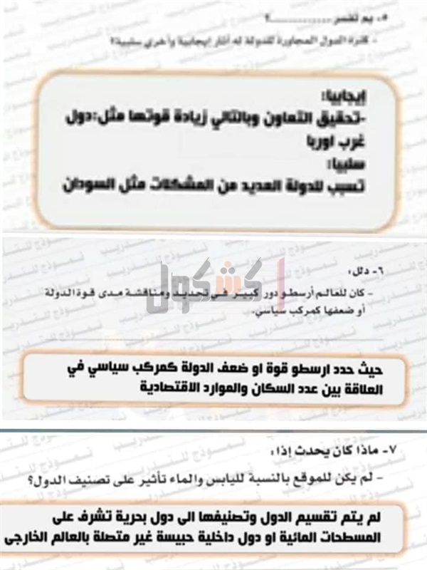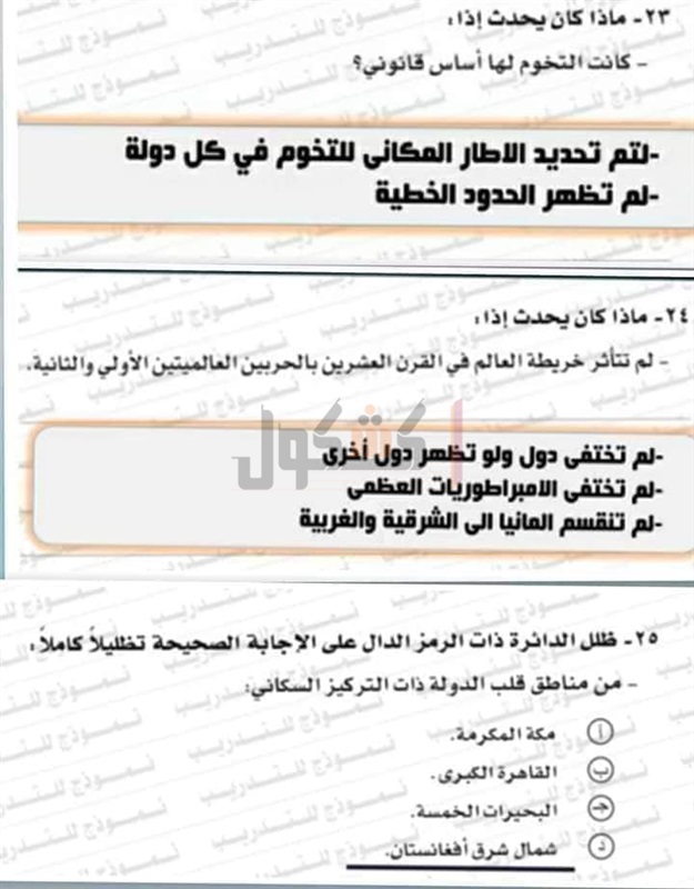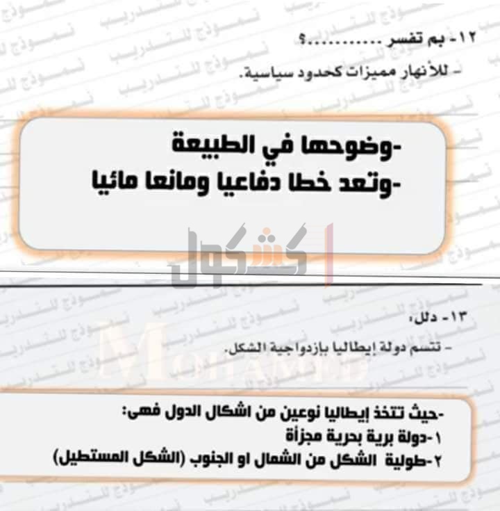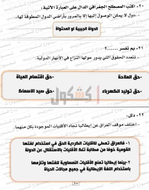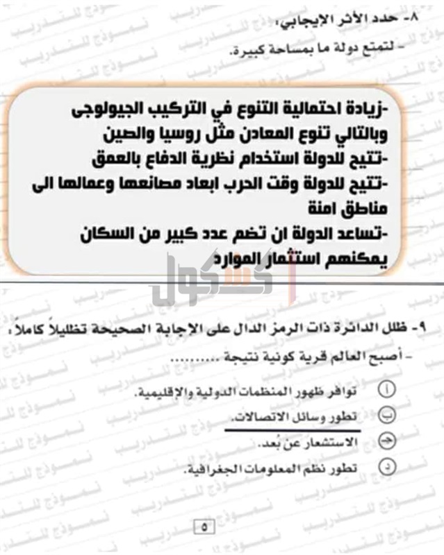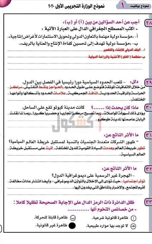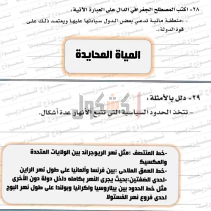 إجابة النماذج الاسترشادية في مادة الجغرافيا