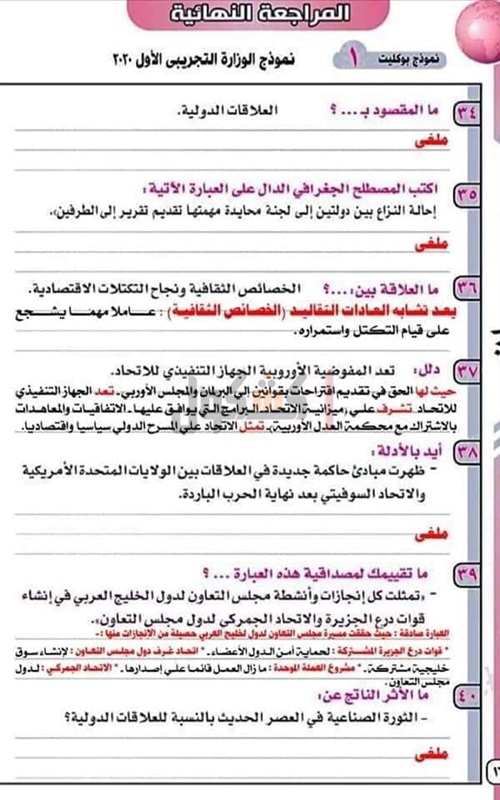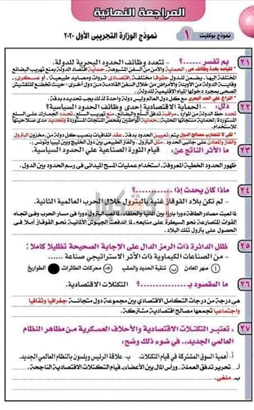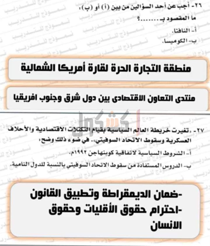 فى الكتاب المدرسى إلى نموذج الإجابة حفاظًا على مصلحة الطلاب.